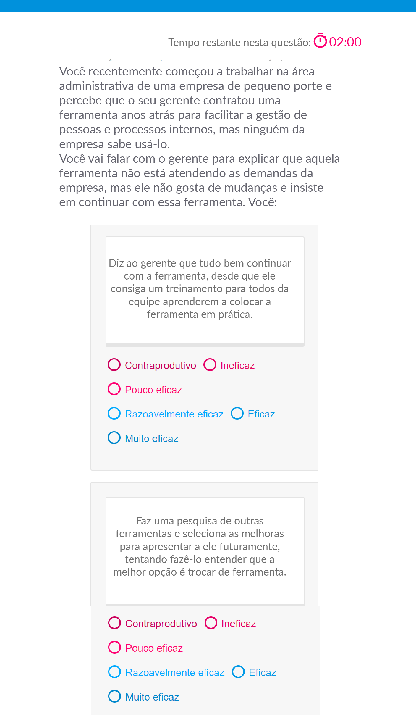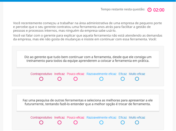 Neste teste, serão 10 cenários situacionais e, em cada um deles, você terá no máximo 2 minutos para responder às alternativas.
